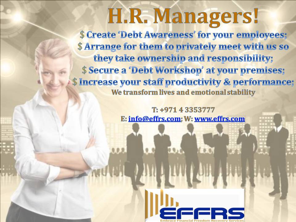 EFFRS, Dubai are offering a Helping Hand, to directly address this problem and avoid unpleasantness interactions, fruitless HR approaches where the employees situation is not improving and then to extend a reach to them to secure a solution for the debt-crisis many are facing.